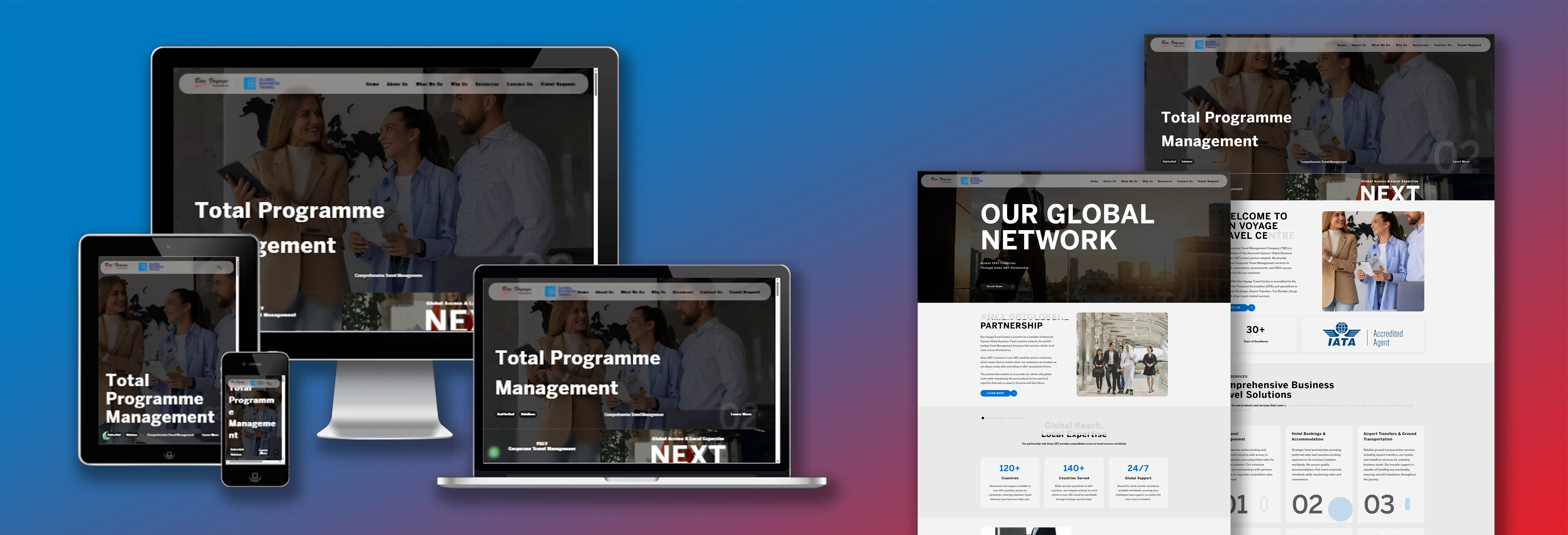 We designed their corporate travel portal to reflect their professional expertise and global network connections. The platform features streamlined booking systems, corporate account management, and comprehensive travel services. We emphasized their Amex GBT partnership and IATA accreditation through professional design elements, secure booking workflows, and corporate-focused functionality — built for scalability with SEO optimization and mobile responsiveness.