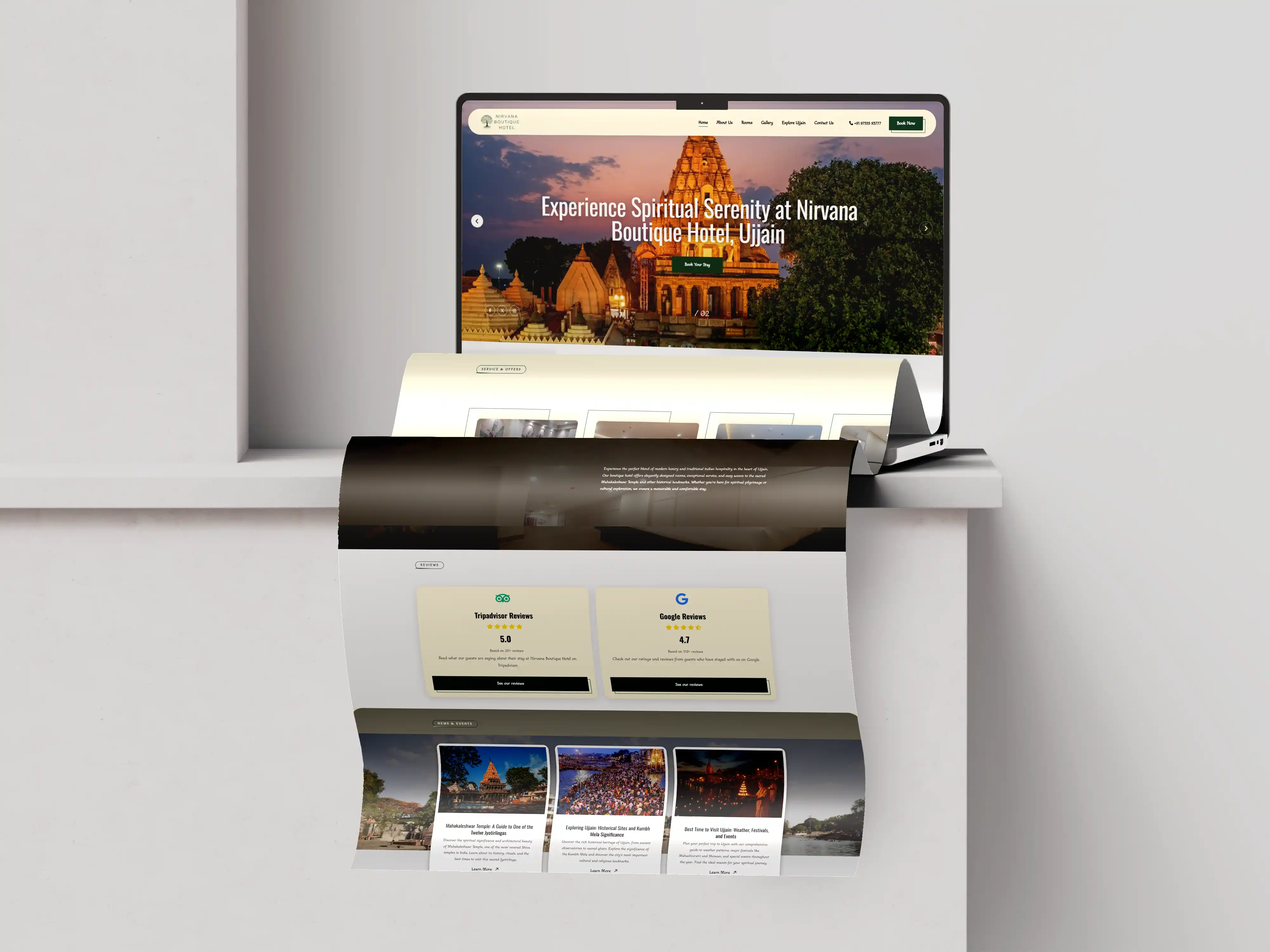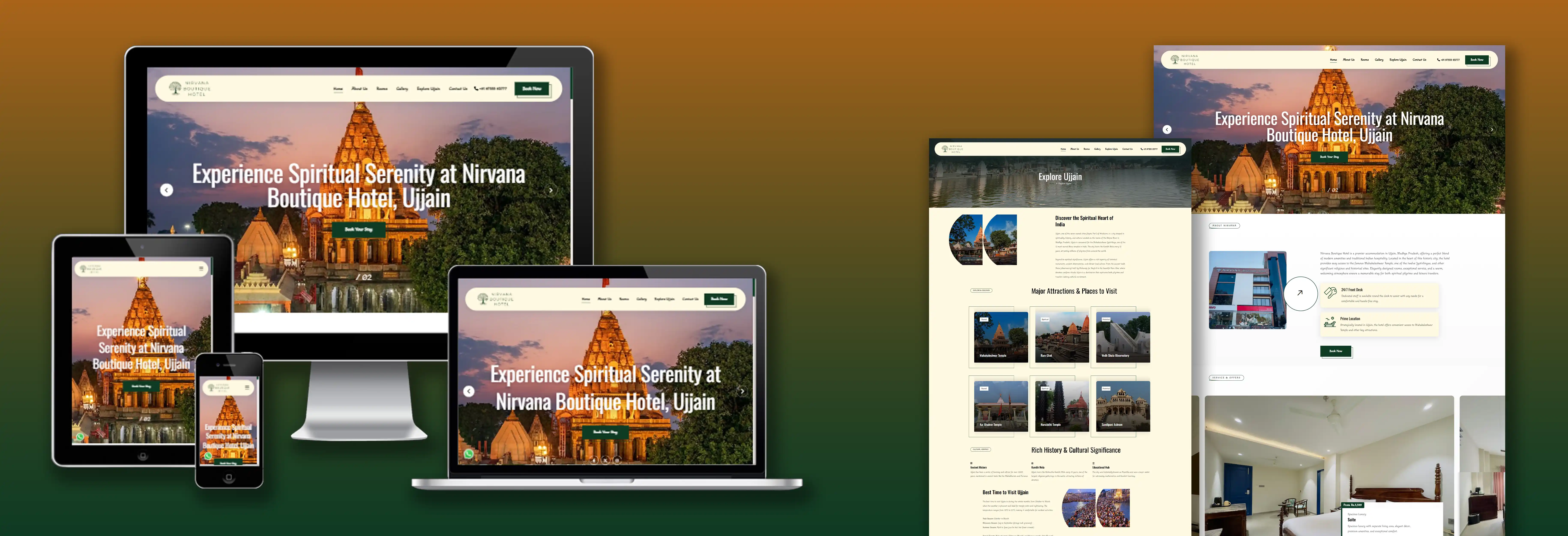 The elegantly designed rooms, exceptional service, and warm, welcoming atmosphere ensure a memorable stay for both spiritual pilgrims and leisure travelers. Nirvana Boutique Hotel wanted a digital presence that would reflect their commitment to providing exceptional hospitality experiences while showcasing their prime location and modern facilities.