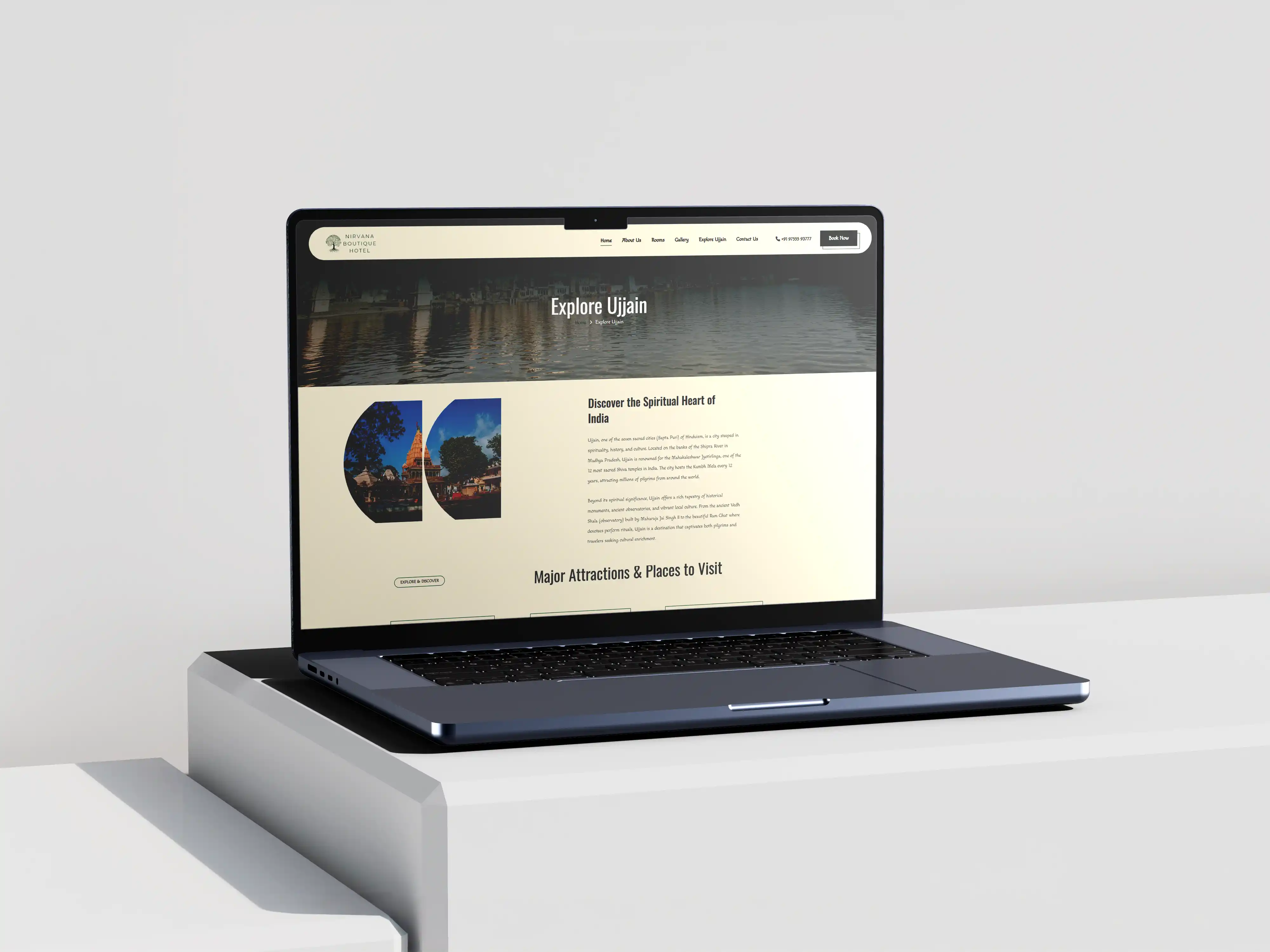 We designed their website to embody the perfect fusion of traditional Indian hospitality and modern luxury. The platform features immersive room galleries, comprehensive amenity information, and seamless booking systems. We emphasized their proximity to Mahakaleshwar Temple and other spiritual sites through elegant design elements, virtual tours, and detailed local information — built for scalability with SEO optimization and mobile responsiveness.